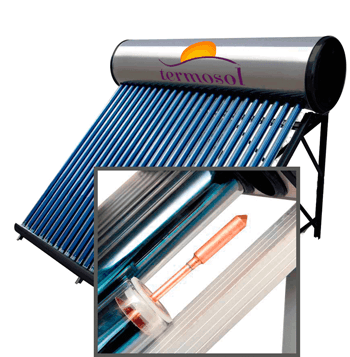 El componente clave del sistema solar Termosol son los tubos de vidrio al vacío de alta tecnología que absorben no solamente los rayos solares directos (radiación solar directa) sino también el calor del medio ambiente, incluso cuando esta nublado (radiación solar difusa).